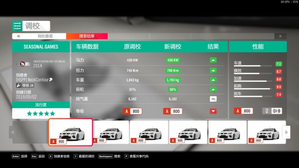前后轮非常抓地,刹车距离短,按线走无脑赢,比5星热门调教更均衡,他的极速并没有比我的快多少