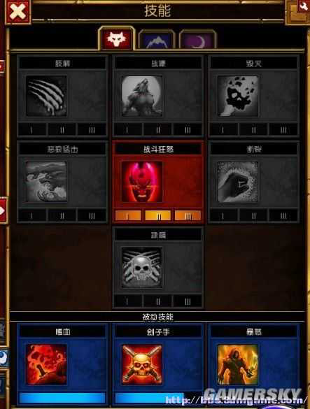 1.战争狂怒:群战肉抗怪越多越强,体现狂战二字意义的技能,前期5点足够.后期点满.