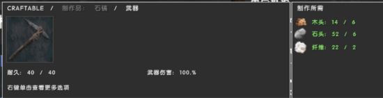 做出石镐以后就开始做石斧,木头用镐子砸树可以得,燧石用镐子砸石头可以得,石头用镐子砸石头可以得,纤维在草丛里摸果子的时候有机会获得,得到工具之后,算是完成了游戏的第一步(采集资源终于不用扣血了)。