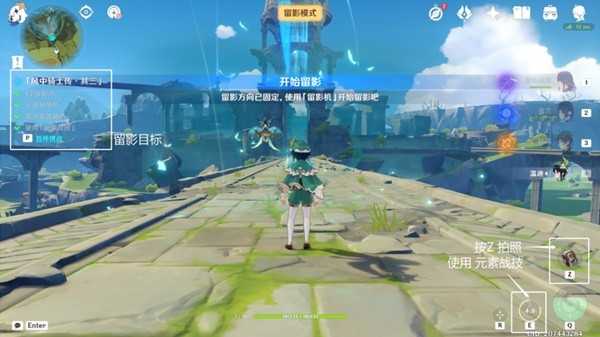 使用元素战技即可,达到留影目标,按Z使用小道具「留影机」