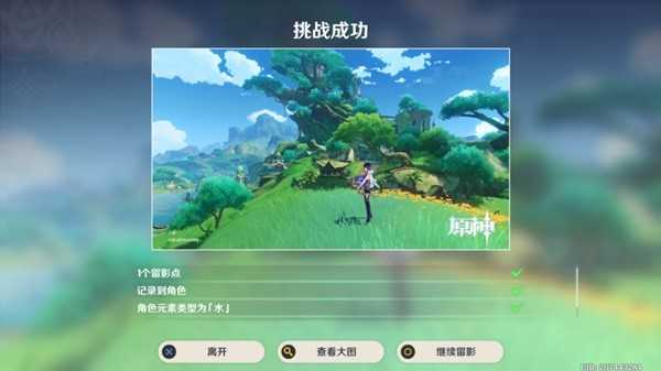装备小道具「留影机」,使用水元素角色,准备留影