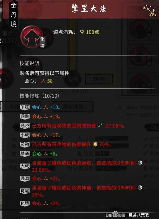 大家上手土修玩召唤流,-技能CD是关键,一般高级神通很容易门派刷出两个减cd的,完美是36秒一个神通。大法里面-25%完美再加上血灵-20%,完美情况下不到20秒就能召唤一个巨大傀儡。最主要的是它普攻特效60%眩晕2秒,只要触发双灵共生boss完全不能动弹。
