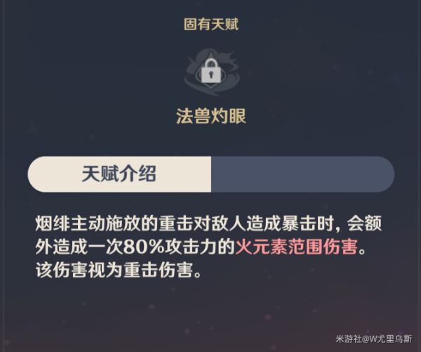以当前锁定目标为中心 唤出火焰 造成火元素范围伤害 在命中敌人后会为烟绯提供最大层数的丹火印。
