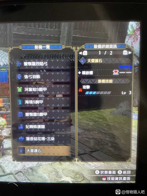 第三套,刷到了个奇怪的护石,特制泡狐滑滑弓整体伤害比第一套略低一些,训练场平平刚刚大概打750左右,第一套800出头,牺牲一点伤害,多了弹道强化2,滑起来有回性1,gp更安全,弹道强化把作战距离拉远了,回距1向后滑,或者怪多动症更容易调整进入射击距离。第一套野场经常出现的情况是距离刚好够,平平接刚刚的瞬间怪被打出硬直后仰,导致刚刚两下刮痧,很影响节奏,当然这是技术问题,技术够能保持近距离作战感觉不用也行。