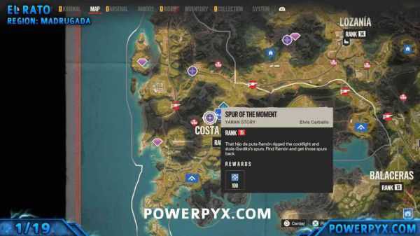 公鸡属于收集品,在马德鲁加达区域的主营地【蒙泰罗农场】可以建设【斗鸡】设施。每只公鸡都可以在斗鸡时出战,需要攻击/躲避其他公鸡。在【斗鸡】中选择公鸡时可以查看每只公鸡的位置相关提示。默认情况下公鸡的位置不会在地图上标记出来,可以在线上使用点数购买地图以在地图上立刻显示标记。