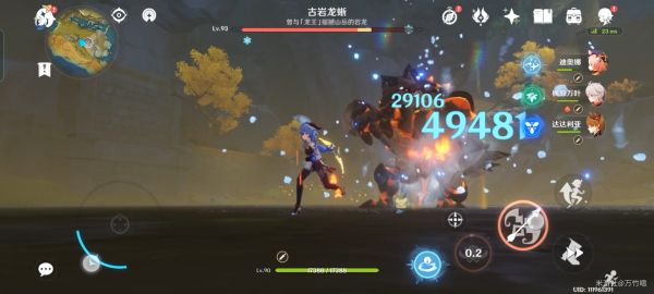 接下来是再次对刚才的配队进行优化后的队伍,我将温迪换成了万叶,并且使用万叶的扩散效果为甘雨增伤,万叶e扩散触发了风4减抗,天赋增伤,专武加攻加伤,甘雨一箭的伤害变成了29106+49481是78587(非微弱状态的龙蜥),这套比刚才还要适合锄大地和大世界打boss,仅仅需要万叶一个e就能把伤害拉到7w8,接近8w,恐怖如斯。看到这套伤害如此恐怖,我就在想,这仅仅是万叶e了一下的伤害,那如果我甘雨自己开大,莫娜再开个大不是上10w伤害了?于是就有了以下的配队。