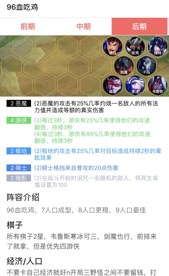 后期:四极地四游侠,如果血量经济还好,就上人口外挂双龙。
