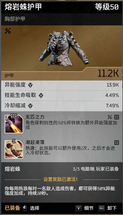 依靠熔岩蛛三件套提升异能强度,中行最后一个天赋提升抗性穿透。