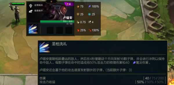 解读:输出炮台,面板属性4费输出棋子中出攻击较高其他较为中庸;羁绊方面光明哨兵与炮手均非常契合卢锡安,光明哨兵增加攻速,可让技能多获得子弹数量,炮手增加普攻群伤。而卢锡安技能方面应该说是S5与S5.5输出型棋子中上限较高、下限最高的棋子,技能伤害非常稳定,2星技能全中下,可造成2700+伤害(物理伤害+魔法伤害)。出装方面:卢锡安不吃装备法强装备、物理输出装备、攻速装备均可。