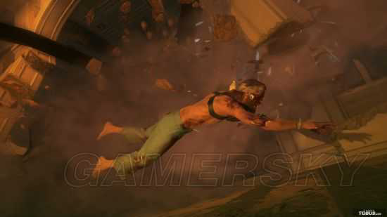 剧情结束之后,继续往大门方向走,不用多远就会被炸倒,朝火男开枪也没用,绷带男会在关键时刻开车救你出去。扰民精辟可以放下手柄安心看片了。