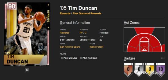 NBA中,马刺的球迷绝对不在少数,而粉钻邓肯出现在代币市场奖励卡中更是让不少玩家感到兴奋,那么这张粉钻邓肯属性如何呢?一起来看《NBA2K19》粉钻邓肯球员卡数据简析,一起来了解一下吧。