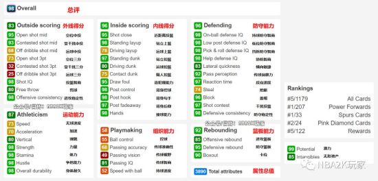 对于刺狗来说,石佛代表了终极信仰,这张卡的属性总值为3890,六大项中有三项高光(内线得分、防守能力、篮板能力)、两项绿区(外线得分、运动能力)和一项红区(组织能力)。