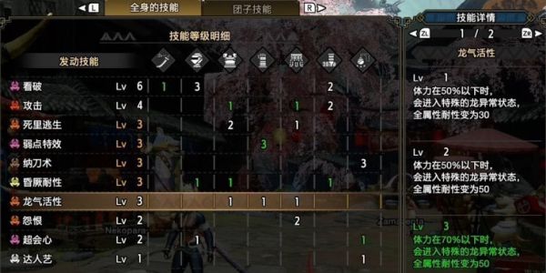 龙气活性3级:血量低于70%,会进入龙属性异常,所有抗性变为50(触发后非常的抗揍)