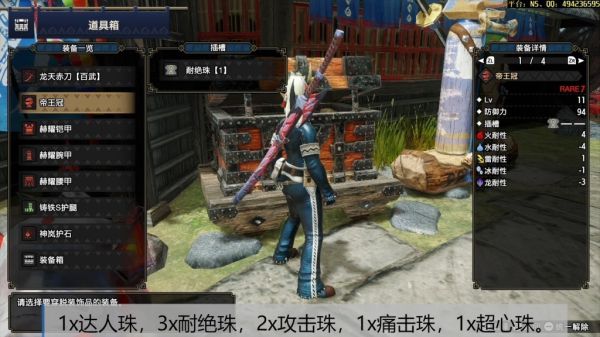 百龙插槽:龙种特效(除古龙外,所有种类的龙有额外伤害加成,我认为应该是普通攻击与铁虫丝技都有加成),防具与护石(需要神护石)。