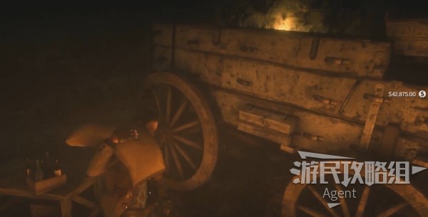 亚瑟回山洞拿到钱后(箱子在山洞左后方,藏在马车下面),刚出山洞就被迈卡截住。