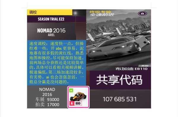 季节赛通用关键点:不要严格按照辅助线的黄红刹车减速,直角弯u型弯v型弯要刹车减速,到黄色就可以转过去,再加速。