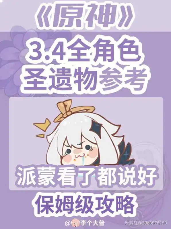 《原神》3.4版本有许多地方进行了改动,所以角色们的圣遗物也需要跟随版本进行调整,下面请看玩家“”带来的《原神》3.4版全角色圣遗物选择参考,一起看看吧。