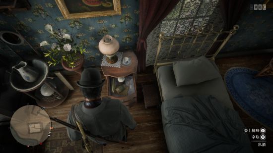 私酒可以从很多地方搜到,距离楼上打鸟最近的是草莓镇旅馆2楼第一个房间的床头柜,可以通过重进战局反复获得。