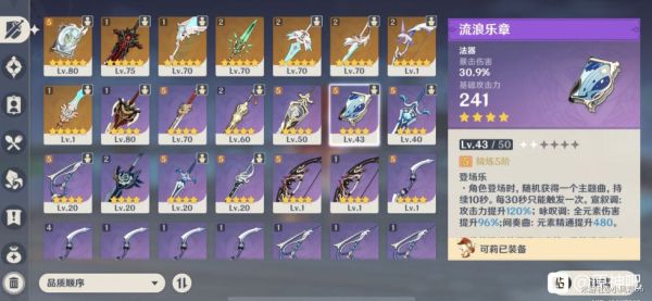 这里我强烈推荐流浪乐章,因为我的手法是不断触发蒸发速切eq来打伤害平a是没有点的,流浪不管是百分之120的攻击 百分之96的元素伤害,还是400多的精通,在eq速切每隔30秒可以配合姥爷打一轮超高的爆发,在这里我觉得他是优于任何武器的,这也是为什么别人莫娜核弹20万你只有10万的重要原因。