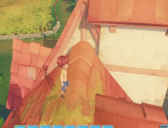 从圆桌餐厅门口的位置,跳到太阳伞上即可上屋顶。