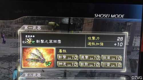 比如:我想得到图一中王元姬的武器,那么通过将星模式升级到50级后的赌博或是购买武器,买到属性中是上述5个属性的四个圈的武器(下文称四级武器)。即使不是,也只能有一个不是。一般来讲,如果能买到空白的四级武器是最好的,不过我赌了很长时间,也没有出无属性的四级武器,只能拿一个只有一个斩击属性的武器来合成了。