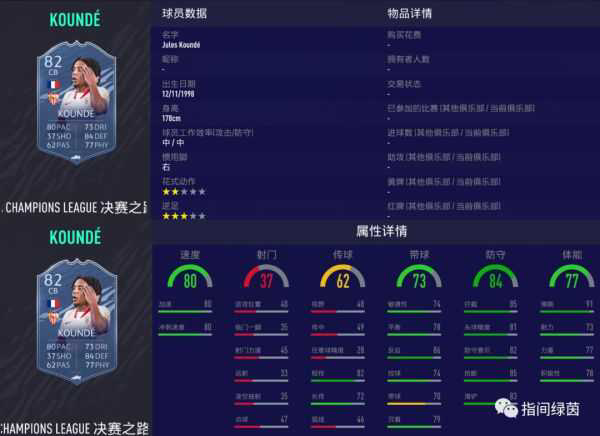 这张孔德属性看起来还算能用,速度和防守给的比较过关,只是178CM的身高和77的力量打中后卫一定要再配一名高大型CB。这张卡法国+西甲的户口相当不错,此外塞维利亚在E组不出意外的话,基本锁定一个出线名额。