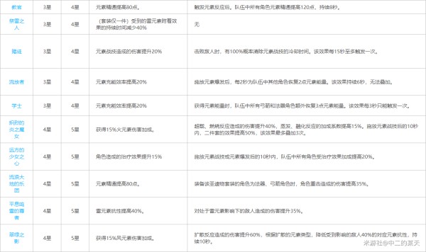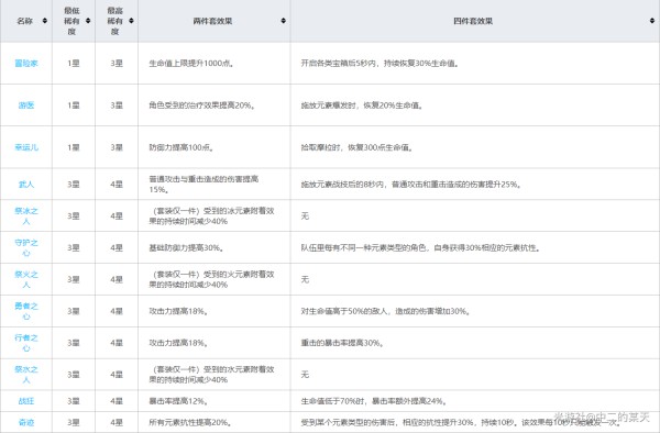 除此之外,同类型的圣遗物在2件套、4件套时还会有额外的附加属性,部分圣遗物在1件就有额外效果: