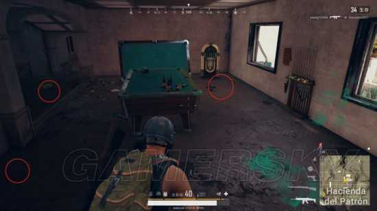 第一部分一般枪会刷在台球桌附近,也可以翻窗出去。而图中右侧的位置可以藏起来埋伏敌人,是个很好的LYB的点。