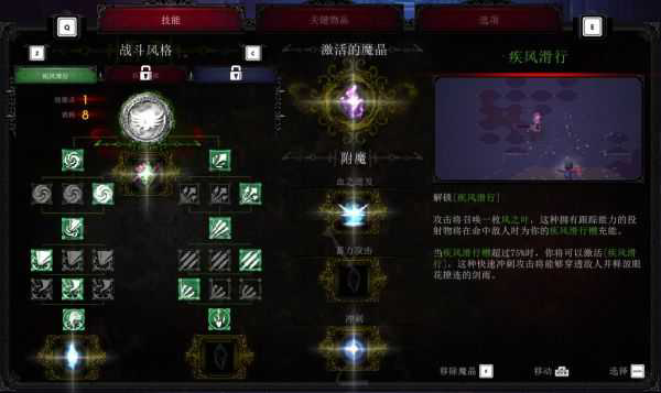 绿色疾风太惨了,目前5周目,我发个走钢丝流派,这个流派爆发输出很快,适合闪避达人,有点类似mh里面的底力流。核心重点是鹿神的魔晶配合Q键疾风滑行,这个搭配的效果是可以连续无限触发Q的伤害,缺点是每次触发扣35%的血(5周目时候),但是这个扣血不会把你扣死,所以适合挑准时机爆发一波输出,之后靠闪避和嗜血回血。最适合的时机是控制好boss血量,打到boss变身时候一波爆发直接boss半管血带走。