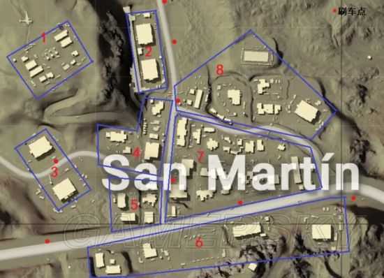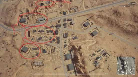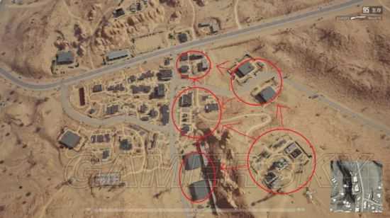 1.烂尾楼区:热门落地点,山上有公认的富裕的烂尾楼,一般会有两三个队伍落这里,一般会有一两件高级物资或者狙,清完这个点后可以直接下山打2号点和3号点,非常方便。