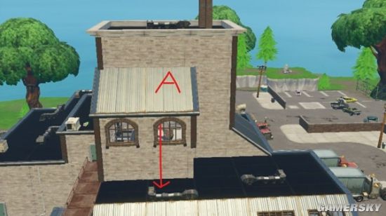 很多玩家都喜欢在空中直接降落在高处点位,可以减少我们的空中滞留时间,没有来过这里的玩家,往往都会选择降落在A点,然后击碎房顶,进入屋内搜索,其实你降落的时候就会发现,这么高的一处点位,根本就没有其他玩家与你竞争,其实,我们仔细观察,在红色箭头方向处,下面是中空的部分,如果我们击碎屋顶,就会直接跌落到下面,瞬间就被淘汰,这也是没有人跟你竞争的原因,玩家们需要多注意。