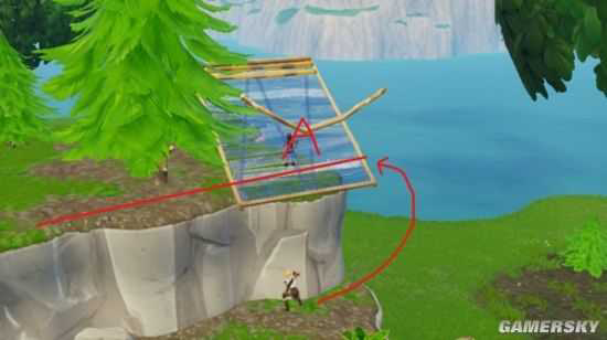 当敌人上来后,我们可以搭建两处竖板加斜板的掩体,从高点对敌人进行射击,但这样搭板,一定要小心后面是悬崖,在斜坡上跳跃攻击的时候,一定注意脚下,不能掉下去,一旦失足,不仅会损失血量,最重要的是,敌人也可以从高点对我们进行打击了。