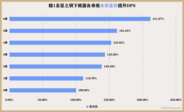 妮露自身的水元素伤害来自元素战技、元素爆发,升级优先级低于战技、大招。