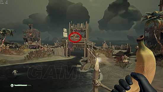 8.黄金骷髅走很慢,如果你听到金属敲击声,那就是黄金骷髅来了,一般骷髅岛岛中间会有小水坑,把他们一起引到水坑里,沾水的黄金会降低移动速度,堵车一样后面的怪就会自动凑到一起,用步骤4搬运的炸弹,在水坑里安拉胡巴克他们吧!如果还剩下怪,你可以装水泼他们然后用喷子贴脸一枪一个(用刀砍会震晕自己且无伤害)。