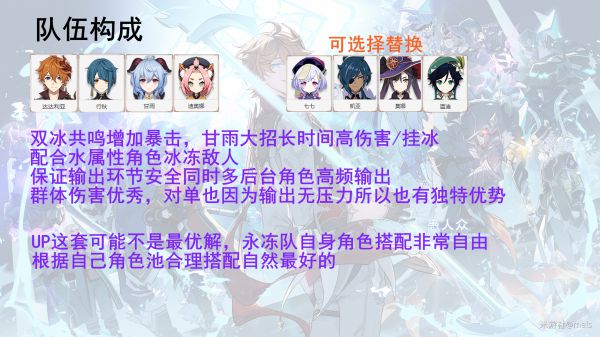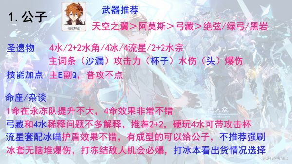 正文 《原神》公子永冻流队伍推荐 快乐游戏家 /2025-07-17 16:33:44 /30 浏览量 0717 《原神》中冰系跟水系通过元素反应可以对怪物达成冻结效果,其中公子作为冰系主C该怎么搭配永冻队伍呢,下面请看“mals”分享的《原神》公子永冻流队伍推荐,希望能够帮助大家。 霜日明霄水蘸空。 -- 展开阅读全文 --