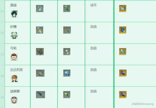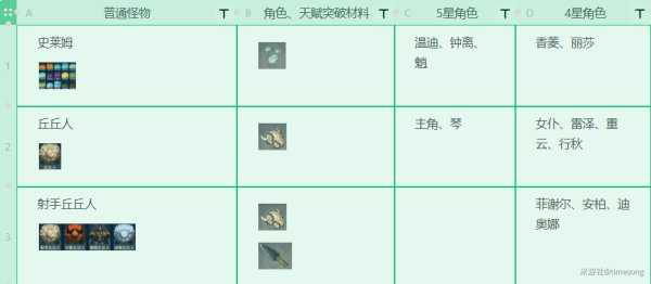 《原神》中角色们的技能升级需要不同的材料,因为种类繁多不少玩家记不住全部的材料来源,下面请看“timesong”分享的《原神》1.3版本全角色技能升级材料一览,希望能够帮助大家。