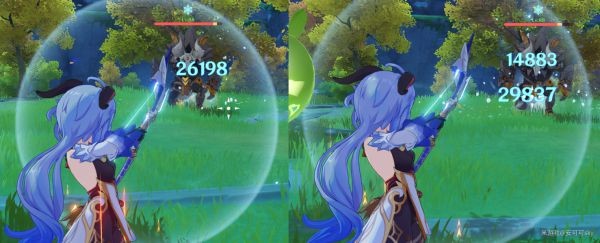(2).有爆发能力意味着吃拐能力增加,在融甘队给甘雨的数秒输出时间内,甘雨可多射1/2发满拐箭。