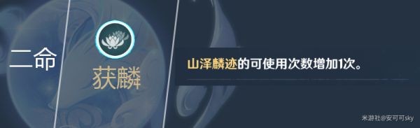 非关键命座,【山泽麟迹】(E技能)可多使用一次。