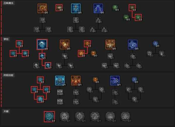巅峰优先点冰冷命运,拉高幸运一击率,然后优先点出第二个雕文槽,再点陨冰增加生存,这里顺序也可以颠倒,看个人。