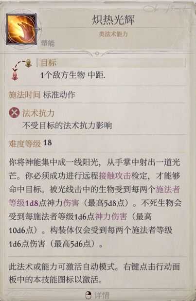 第2点,神力伤害也是能量伤害,尽管不在元素类的范畴,神力伤害也会被元素奥法转化成对应能量类型的伤害。这个点是我在使用神裔能力炽热光辉时发现的,我没有关元素奥法能力,然后炽热光辉被转换成了火焰伤害。由此可知,正/负能量伤害应该也会受到这一影响。