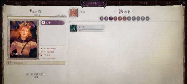 有人说混血术士拿环太慢,而我实践后发现这个说法并不正确。混血术士获得的法术位其实和普通术士完全一致,只是学习法术的等级会比普通术士晚一级。我们来看截图:4级的混血术士,法术书里因为没有2环法术,所以2环法术那页是灰色的,无法选择;当我们装备了黑暗预兆后,获得了2环的恐吓术,这时候再打开法术书,可以看到2环那页可以正常选择,并且会显示每日可用法术量。由此可知,混血术士这个“获得高环法术太晚”的缺陷是完全有机会找补回来的。除了佩戴这种增加法术的装备,超魔也可以作为补缺手段,因为混血术士是有法术位但是没有学法术,超魔后法术升阶,我们就有法术了。