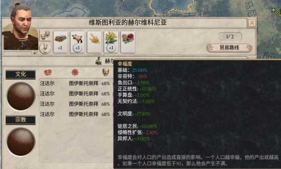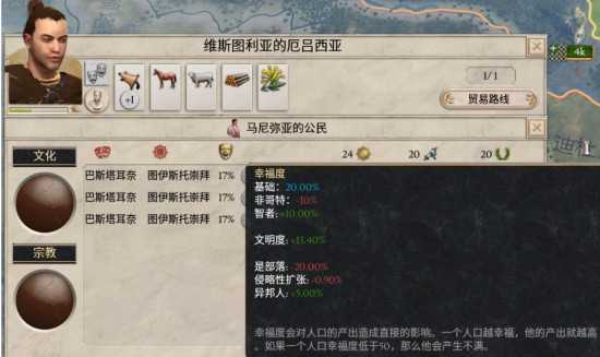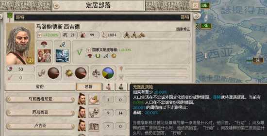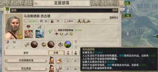 不同文化的公民和自由民额外减30%幸福,多出来一个莫名其妙的“是部落”DEBUFF,好像同文化的公民和自由民就不在乎部落政体似的。如果是不同文化组,这个“非哥特"DEBUFF似乎还要加上个20%。