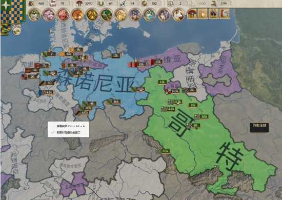 这游戏里总有一两个情怀国家,或地理情怀拜占庭,或似是而非帕提亚,满地异文化斯基泰,还有两地霸主哥特王朝。