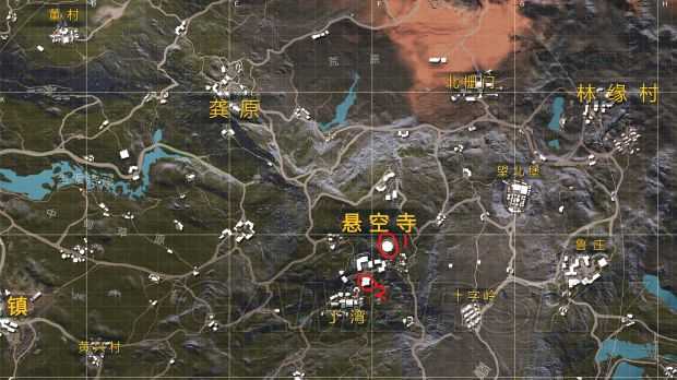 如下图,1号位置是悬空寺啦,一层可以修炼金刚心经,顶层有随机好心法。为什么我要把2号位置标出来呢?因为那里应该是固定刷《断龙劲》和《墨衍录》的地方,那里是一尊大佛,旁边有座桥,过去之后有个石桌,两本顶级杂学就在那上面。
