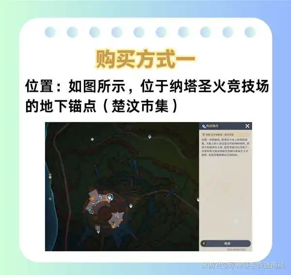 位置:如图所示,位于纳塔圣火竞技场的地下锚点(楚汶市集)