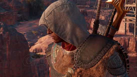 在经历了八爷原始套破烂的围巾之后,新版服装的兜帽着实让人眼前一亮,虽然兜帽效果没有原画那么挺实那么亮丽,但却更加真实。而另一亮点则是袖剑护手甲,带着飞鹰羽翼的无形者标志得以完整展现,细致纹路也均已三角为主,符合埃及特色。