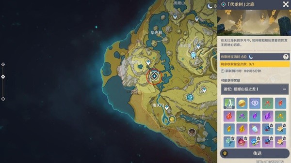下图是「若陀龙王」的具体挑战地点,位于璃月地区。