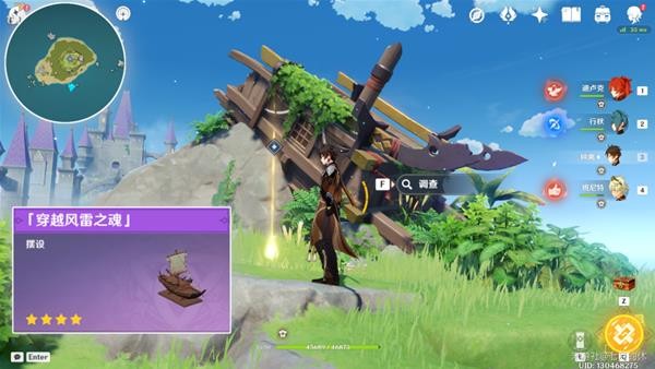 就在旁边一点,可以网上爬,在山顶断船处,获得4★摆设「穿越风雷之魂」。