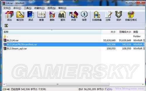 3.解压U4.rar中的BL2.U4.rar压缩包!将里面的全部文件放入游戏所在目录【Borderlands 2\】文件夹中,覆盖!