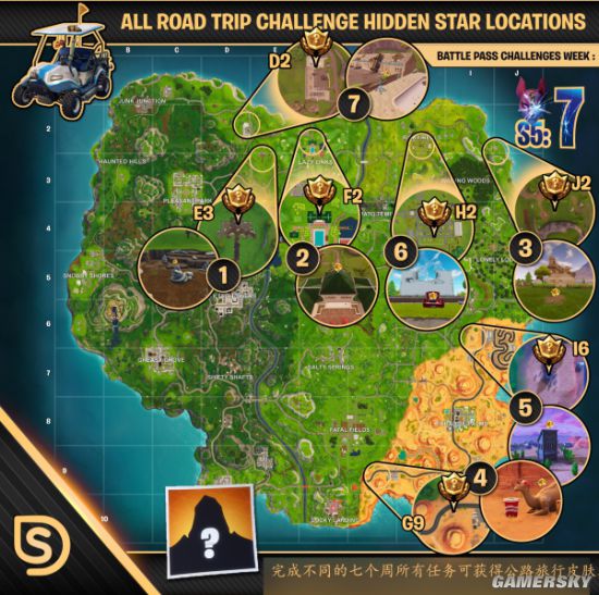 我建议,先做完特殊的收集类任务,比如沿着藏宝图寻找宝藏的任务,和使用各个地点的闪电啊,打飞饼啊之类的。然后再做开宝箱顺带淘汰敌人的任务,武器伤害淘汰随便在一局游戏里都能做,最后做所有的影藏任务。下面是影藏是所有影藏星所在的位置。